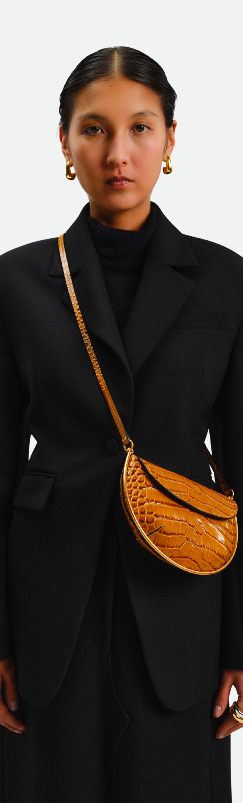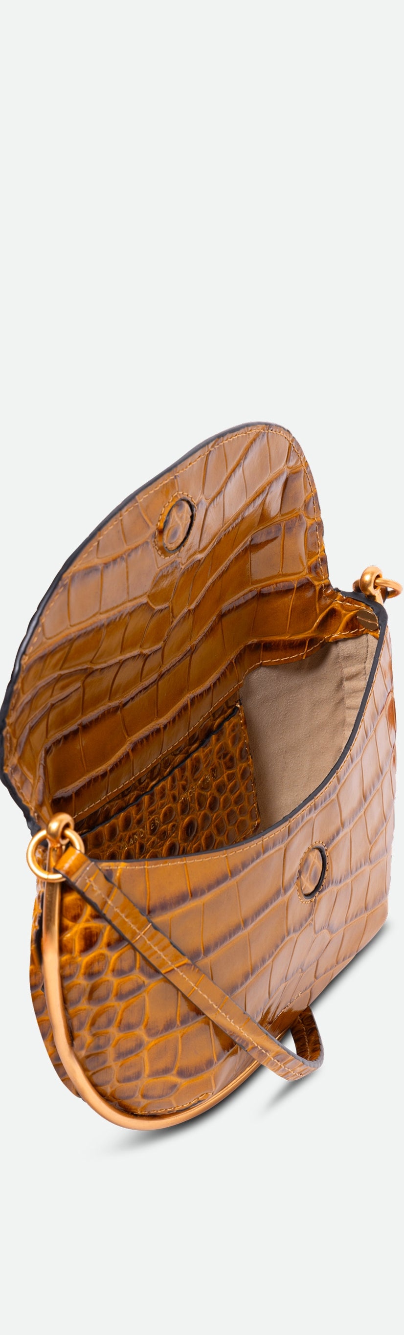 Unser Leder mit Krokodilprägung interpretiert ein klassisches Motiv modern und detailreich. Es verleiht den Taschen Struktur und Tiefe.