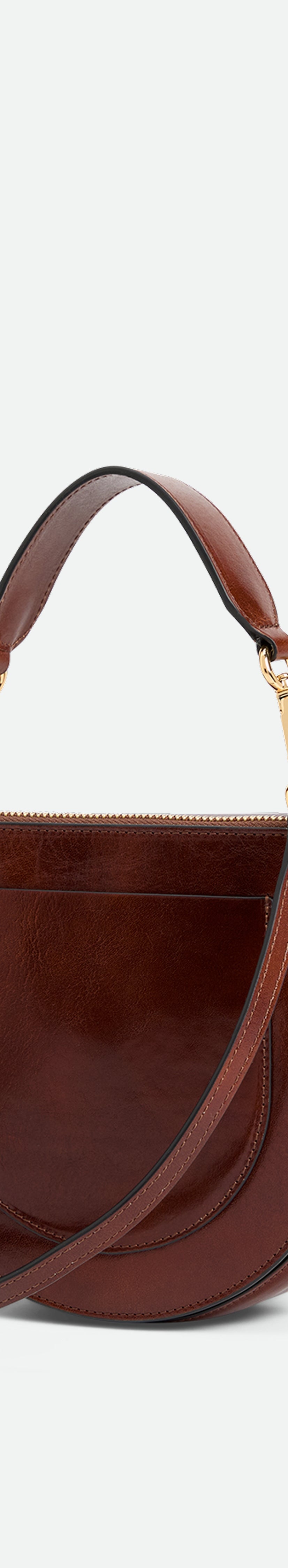 The glazed leather brings depth and richness to the bags, available in the color Cognac