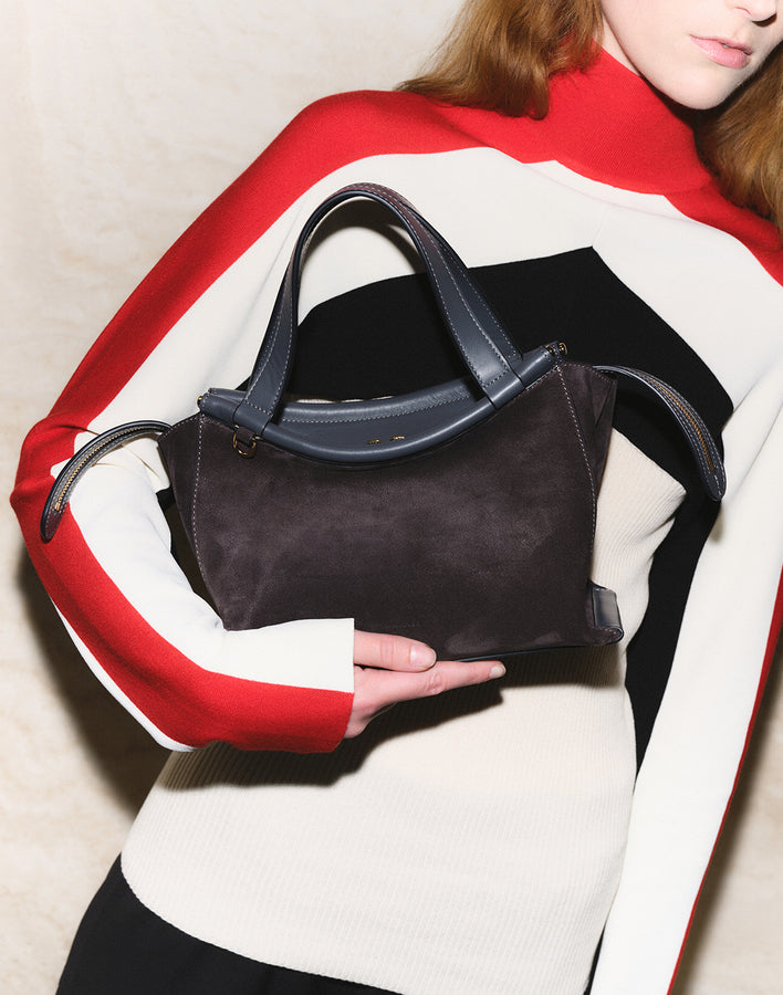Structured yet relaxed, it features sculptural lines and a modern silhouette. Carry it by the top handles for a polished look or use the adjustable strap to wear it crossbody.