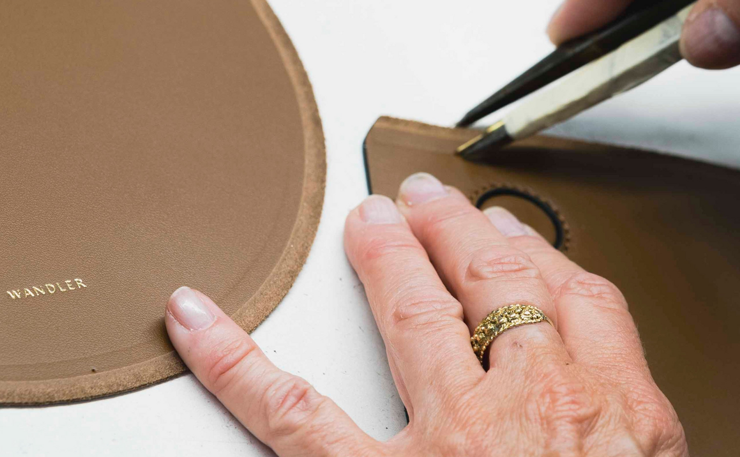 Each Wandler piece takes up to eight hours to create, shaped by artisans who master every detail by hand. Their precision defines the edge paint, the embossed logo, and the character of every bag.