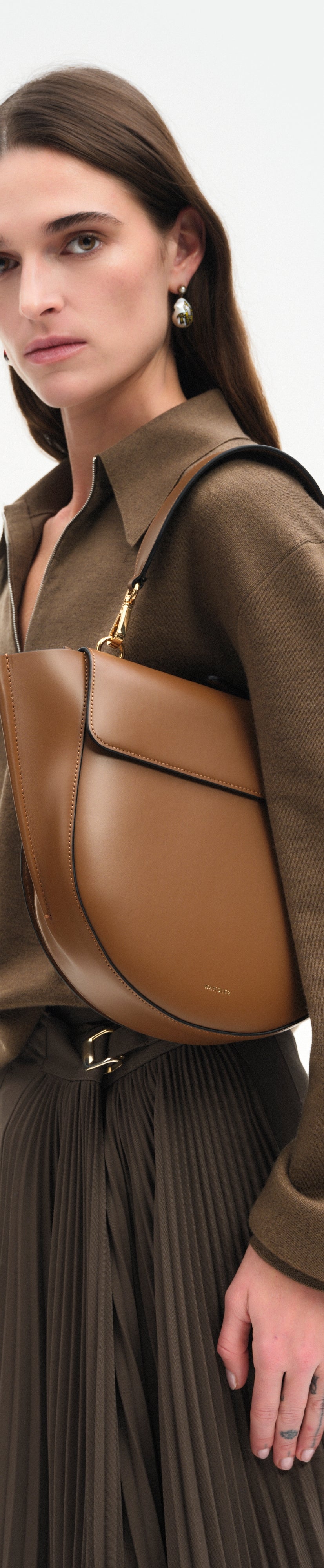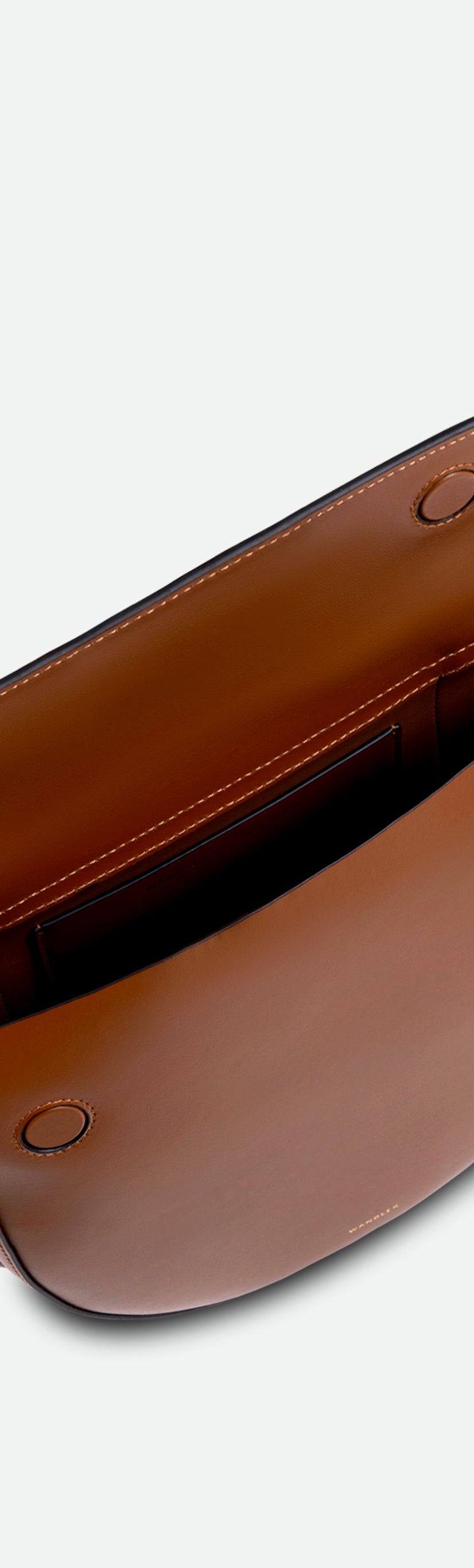 The glazed leather brings depth and richness to the bags, available in the color Cognac