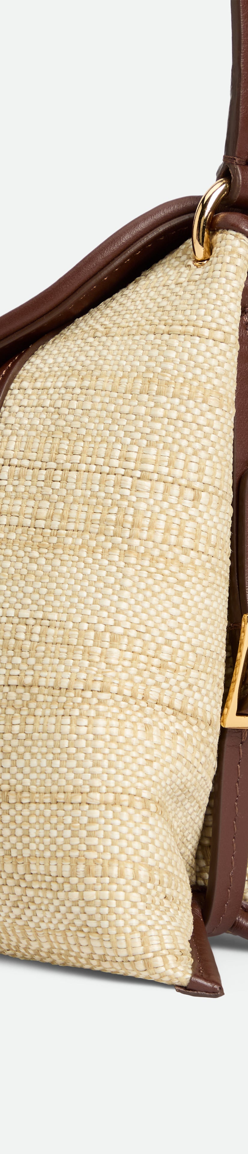 Defined by its slouchy character and effortless feel, now in raffia. Finished with smooth calf leather edges, a hidden magnetic closure and a slim adjustable strap.