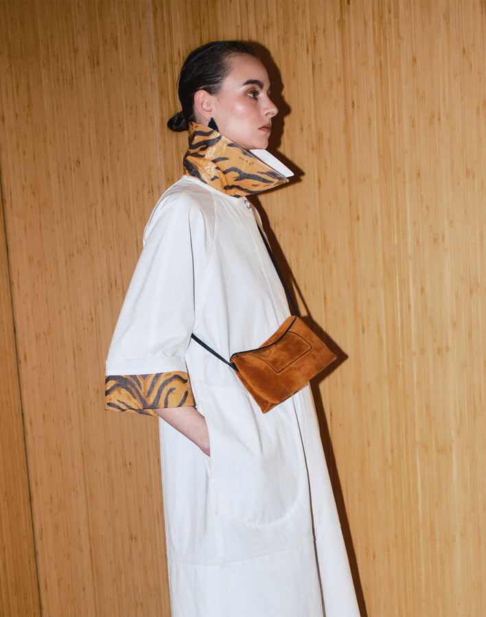 A balance of structure and softness Italian-made, endlessly versatile. This soft, slouchy silhouette retains its form while moving with you. Available in crust leather and suede, each variation highlights the richness and depth of Wandler’s material through a spectrum of color.